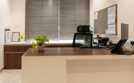 • 木目で仕上げたオフィスエントランス