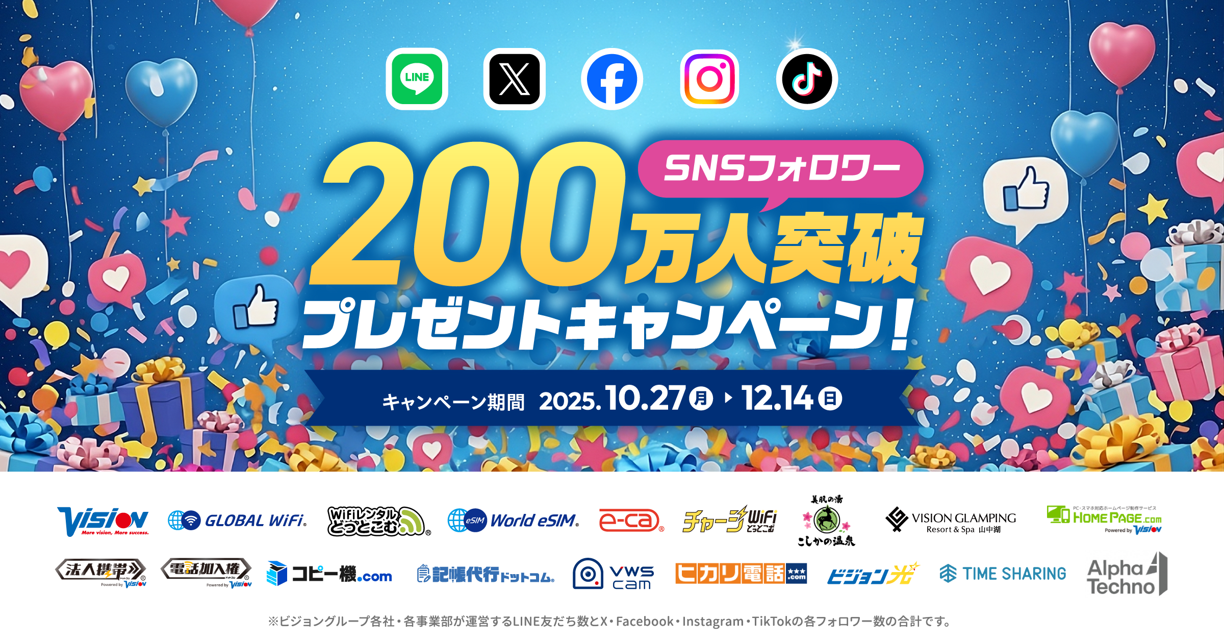ビジョングループSNSフォロワー200万人突破記念キャンペーン開催中