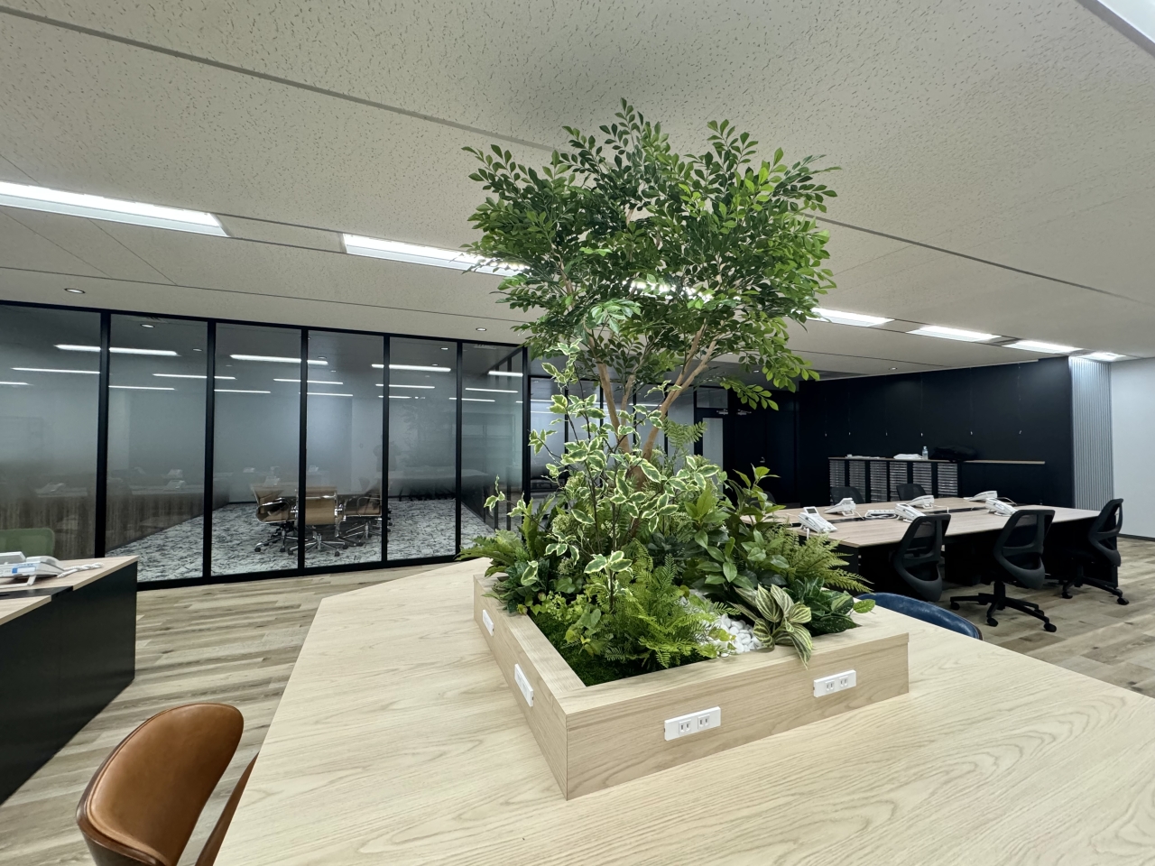 PROJECT 施工事例Construction exampleエントランスに古材を使用し、執務室にシンボルツリーを設置したオフィス内装 お客さま事業内容溶接施工期間25日程度規模280㎡請負箇所内装工事、電気工事、弱電工事、サイン工事施工内容造作壁工事、塗装工事、クロス工事、床工事、照明工事、サイン工事、等 Before After 施工後の内装 前へ 一覧へ戻る 次へ