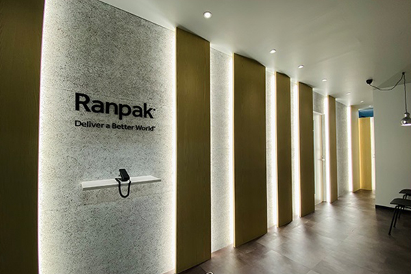 白と木目を基調とし間接照明で空間を演出したエントランス
