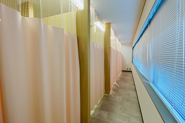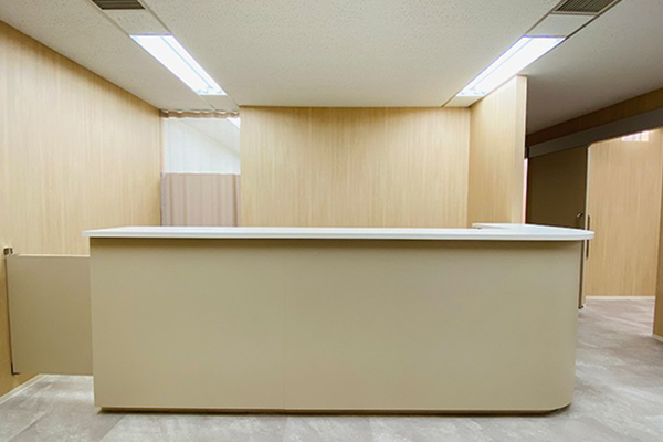木目とストーン調を基本に。癌患者様向けの薬剤投与クリニック