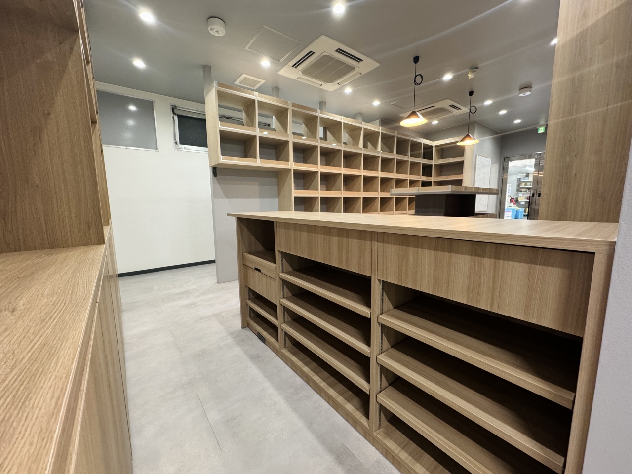 PROJECT 施工事例Construction example造作家具で仕上げたウィスキー販売所 お客さま事業内容ウィスキー販売施工期間25日程度規模48㎡請負箇所内装工事、電気工事、弱電工事、サイン工事、店舗開業に関する全ての工事施工内容造作壁工事、塗装工事、クロス工事、床工事、照明工事、サイン工事、等 Before After 施工後の内装 前へ 一覧へ戻る 次へ